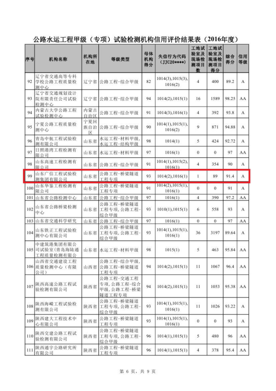 2017年5月19日,交通運(yùn)輸部安全與質(zhì)量監(jiān)督管理司根據(jù)《關(guān)于印發(fā)公路水運(yùn)工程試驗(yàn)檢測信用評價辦法(試行)的通知》(交質(zhì)監(jiān)發(fā)[2009] 318號)和《關(guān)于2016年度公路水運(yùn)工程試驗(yàn)檢測信用評價工作有關(guān)事項(xiàng)的通知》(質(zhì)監(jiān)綜函[2016]1號)有關(guān)規(guī)定,在匯總各省信用評價結(jié)果的基礎(chǔ)上,結(jié)合掌握的相關(guān)信用信息,對甲級(專項(xiàng))試驗(yàn)檢測機(jī)構(gòu)及試驗(yàn)檢測工程師進(jìn)行了復(fù)核評價,將評價結(jié)果進(jìn)行了公示。山東廣信工程試驗(yàn)檢測集團(tuán)有限公司(以下簡稱“集團(tuán)公司”)榜上有名,榮獲2016年度公路水運(yùn)工程檢測機(jī)構(gòu)A級信用等級榮譽(yù)稱號。