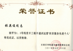 伴隨著石家莊地鐵1號(hào)線的順利開通,2017年5月15日,我司負(fù)責(zé)實(shí)施的石家莊地鐵1號(hào)線綜合監(jiān)控系統(tǒng)項(xiàng)目順利通過竣工驗(yàn)收。同方憑借優(yōu)秀的項(xiàng)目進(jìn)度把控力、出色的實(shí)施質(zhì)量及穩(wěn)定的產(chǎn)品功能,榮獲業(yè)主頒發(fā)的“先進(jìn)系統(tǒng)設(shè)備集成商”,“優(yōu)秀供貨服務(wù)單位”兩項(xiàng)殊榮,項(xiàng)目經(jīng)理張英俊也被評(píng)為“設(shè)備集成商優(yōu)秀個(gè)人”、“供貨服務(wù)先進(jìn)個(gè)人”。