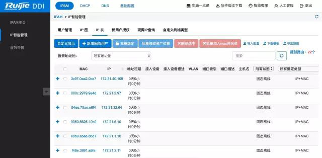銳捷RG-DDI網(wǎng)絡(luò)服務(wù)控制器是集成DNS、DHCP、IP管理三個(gè)功能,是面向企業(yè)內(nèi)網(wǎng)準(zhǔn)入和安全運(yùn)維的新型企業(yè)級(jí)設(shè)備。通過(guò)部署RG-DDI,不需要強(qiáng)制終端設(shè)備安裝客戶(hù)端軟件,即可實(shí)現(xiàn)終端類(lèi)型識(shí)別和終端準(zhǔn)入控制,可迅速定位非法終端,私接路由器、釣魚(yú)路由器。通過(guò)RG-DDI管理界面可執(zhí)行可視化的準(zhǔn)入授權(quán)和監(jiān)控,實(shí)現(xiàn)自動(dòng)、便捷、全方位的IP終端準(zhǔn)入管理。