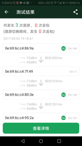 漫游結(jié)果:零掉線零丟包