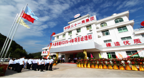 高湛齊致詞說(shuō),“興泉鐵路興寧段4標(biāo),在贛閔兩省三縣各級(jí)政府、鐵建辦領(lǐng)導(dǎo)及多方關(guān)心幫助和支持下,順利完成了選址定點(diǎn),并進(jìn)入正常的工作和生活。今天,在這里舉行簡(jiǎn)樸而又莊重的揭牌儀式,其目的是:表白決心,亮劍精神,接受挑戰(zhàn),同蘇區(qū)人民一道共修致富路,共筑中國(guó)夢(mèng)!堅(jiān)決打勝興泉鐵路這一仗!”