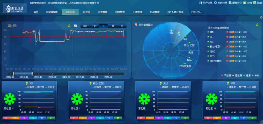 昆明市第三人民醫(yī)院基于ITIL的運(yùn)維管理模式,部署業(yè)務(wù)資源監(jiān)管平臺、IT運(yùn)維服務(wù)平臺和精細(xì)化管理平臺,實(shí)現(xiàn)醫(yī)院基礎(chǔ)資源的集中化監(jiān)管,建立標(biāo)準(zhǔn)化的運(yùn)維服務(wù)體系,大幅縮短運(yùn)維人員響應(yīng)時(shí)間,量化員工績效考核,全面提升信息部門的團(tuán)結(jié)協(xié)作能力和運(yùn)營管理水平。