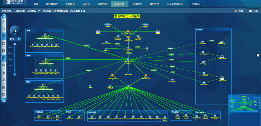 昆明市第三人民醫(yī)院是云南省唯一以肝病、艾滋病、結(jié)核病等傳染性疾病診治為重點(diǎn),集醫(yī)療、教學(xué)、科研、預(yù)防、保健、社區(qū)衛(wèi)生服務(wù)為一體的三級甲等傳染病專科醫(yī)院。近年來,根據(jù)醫(yī)院的業(yè)務(wù)需求和發(fā)展規(guī)劃,信息系統(tǒng)建設(shè)初步形成了以病人費(fèi)用管理為基礎(chǔ),電子病歷為主線、物流為中心的醫(yī)院管理信息系統(tǒng)。通過整合現(xiàn)有信息化資源,采用“三地一中心”的信息化管理模式,實(shí)現(xiàn)了多個(gè)院區(qū)信息化統(tǒng)一管理,資源共享。但不斷擴(kuò)大的信息系統(tǒng)規(guī)模和日益繁重的運(yùn)行維護(hù)需求,成為擺在醫(yī)院眼前不得不解決的問題。體現(xiàn)在以下幾個(gè)方面: