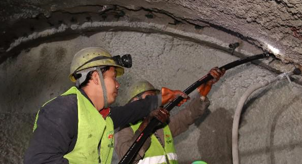 一、三、五、隧道公司項目部引進“噴錨機器人”——濕噴機械手給隧道噴射混凝土,快速封閉圍巖,防止坍塌。針對不同地質(zhì)地段變化調(diào)整施工工藝和方法,對混凝土配合比進行研究,不僅確保了混凝土的初期支護效果,還降低混凝土回彈浪費,使初支混凝土強度合格率達到100%。給隧道加上一道“金剛罩”,確保了隧道安全質(zhì)量。