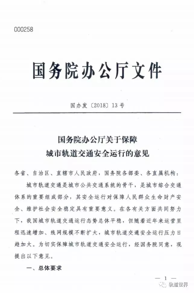 重磅!國務(wù)院辦公廳關(guān)于保障城市軌道交通安全運(yùn)行的意見