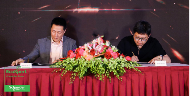 施耐德電氣合作業(yè)務(wù)中國(guó)事業(yè)部市場(chǎng)部副總裁朱文沁與合作伙伴簽約