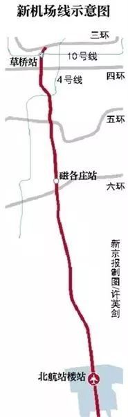 新機場線全長39.05公里,共設3座車站:北航站樓站、磁各莊站、草橋站,全部為地下站。