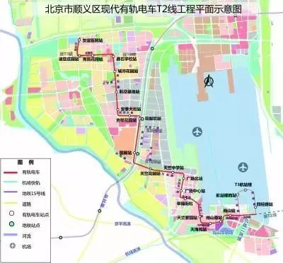 順義T2線途中在國展站、花梨坎站還將與地鐵15號線實現(xiàn)換乘。該線路計劃于2019年全線貫通運營。