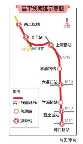 根據(jù)目前計劃,昌平線將從西二旗站南延至薊門橋站,自北向南設置7座車站,計劃于2020年建成通車。