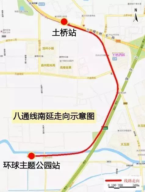 根據(jù)規(guī)劃,八通線將從現(xiàn)在的東端終點土橋站向南延伸4.5公里,到正在建設中的環(huán)球主題公園。
