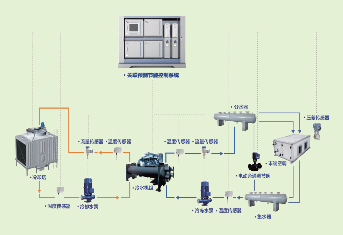 針對(duì)本項(xiàng)目的特點(diǎn),星達(dá)公司配備有類似工程經(jīng)驗(yàn)的專業(yè)人員,將為其增設(shè)一套神舟北極關(guān)聯(lián)預(yù)測(cè)節(jié)能控制系統(tǒng),通過(guò)建立中央空調(diào)冷熱源主要設(shè)備的關(guān)聯(lián)控制模型,根據(jù)末端負(fù)荷及室外環(huán)境變化,預(yù)測(cè)出下一時(shí)段空調(diào)系統(tǒng)的冷量需求,對(duì)制冷系統(tǒng)進(jìn)行前饋主動(dòng)控制,消除冷熱源系統(tǒng)大滯后特性的影響;采用能耗自尋優(yōu)關(guān)聯(lián)控制技術(shù),自動(dòng)尋找各主要設(shè)備間的最佳運(yùn)行匹配關(guān)系和節(jié)能控制參數(shù),實(shí)現(xiàn)系統(tǒng)整體能效最優(yōu);同時(shí), 將能耗自尋優(yōu)算法得到的各設(shè)備最佳運(yùn)行匹配參數(shù),通過(guò)滾動(dòng)優(yōu)化算法在線更新關(guān)聯(lián)數(shù)據(jù)庫(kù),提高控制模型的準(zhǔn)確性,最終實(shí)現(xiàn)制冷系統(tǒng)的高效穩(wěn)定節(jié)能運(yùn)行,為用戶提供了最優(yōu)的控制方案及節(jié)能產(chǎn)品,獲得了合作方的高度認(rèn)可與肯定。