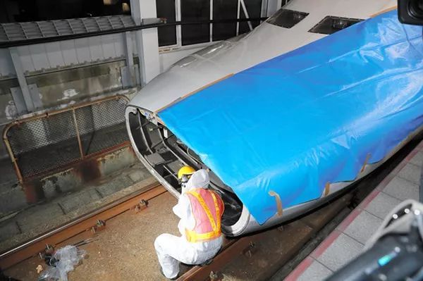 15日凌晨,事故車輛移至博多綜合車輛所,破損的列車車頭部分將進行修理。