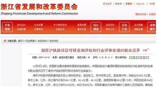 2017年12月12日,浙江省發(fā)改委 發(fā)布題為“湖蘇滬鐵路項目可研咨詢評估和行業(yè)評審在湖州聯(lián)合召開”的新聞。