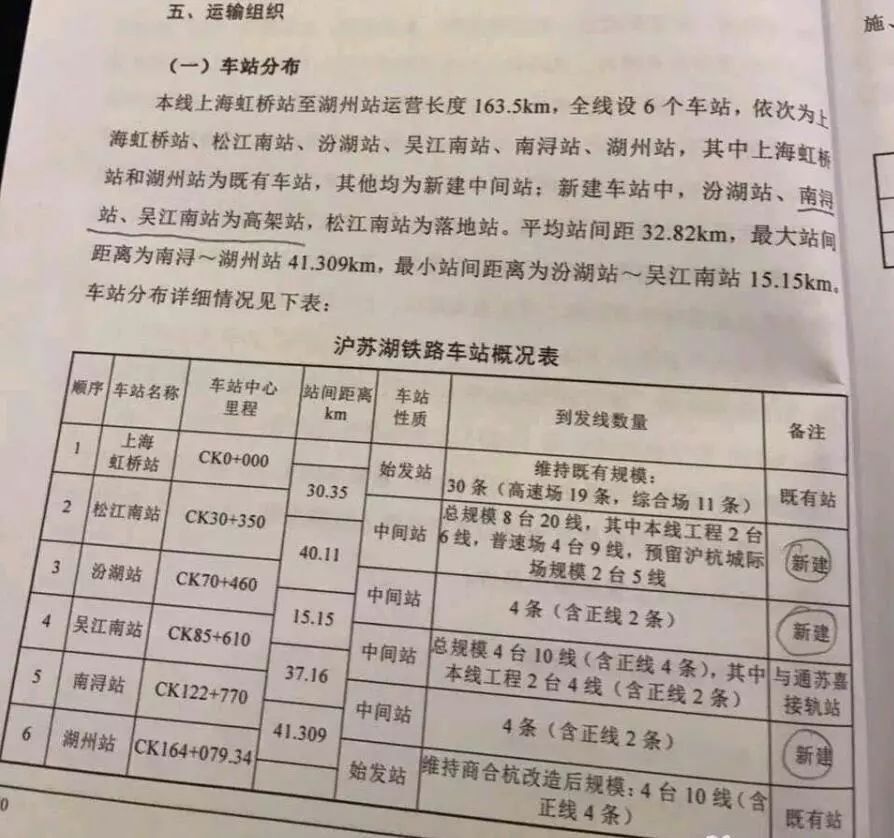 最大站間距離為南潯~湖州站41.309km