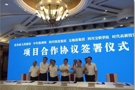 宜賓市人民政府、中車株洲電力機車研究所有限公司、四川省鐵路產(chǎn)業(yè)投資集團有限責(zé)任公司、宜賓五糧液集團有限公司、四川交通職業(yè)技術(shù)學(xué)院、株洲中車時代高新投資有限公司六方強強聯(lián)合,攜手在宜賓建設(shè)集核心技術(shù)研發(fā)、整車總裝、零部件生產(chǎn)、運營維保、綜合服務(wù)為一體的智能軌道交通快運系統(tǒng)大西南產(chǎn)業(yè)基地。