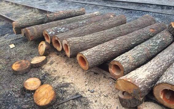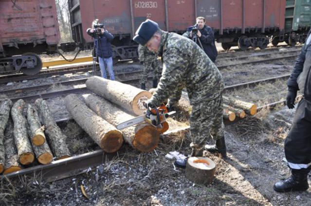 在烏克蘭北部沃倫州一鐵軌上整齊排放了一堆中間被鑿空的木材,這一塊的鐵路也被暫時封閉了,一輛開往波蘭的火車正停在旁邊,而此時有大批的警察正在把車上的木材卸下來。這異常的一幕,引得附近居民紛紛圍觀。
