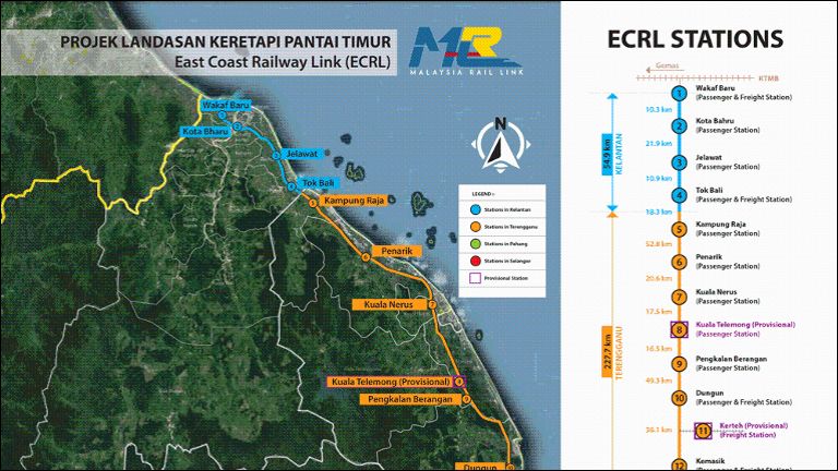 東海岸鐵路全線規(guī)劃總長688公里,由中國交建承建,中國進(jìn)出口銀行提供貸款。該項(xiàng)目已于2017年8月開工,完工后也可作為泛亞鐵路的一部分。