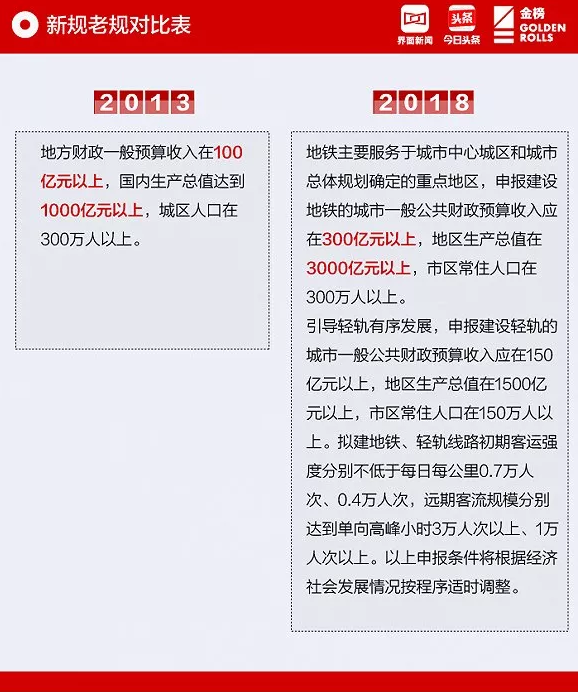 近日,國務(wù)院辦公廳發(fā)布《關(guān)于進(jìn)一步加強(qiáng)城市軌道交通規(guī)劃建設(shè)管理的意見》(下稱《意見》),提高了申報(bào)建設(shè)地鐵和輕軌的相關(guān)經(jīng)濟(jì)指標(biāo)。其中,申報(bào)建設(shè)地鐵的城市一般公共財(cái)政預(yù)算收入、地區(qū)生產(chǎn)總值分別由100億元、1000億元調(diào)整為300億元、3000億元。