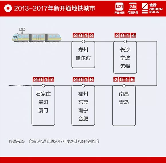 隨著2013年我國城市軌道交通審批權(quán)從國家發(fā)改委下放給省級政府,城市軌道交通建設(shè)進(jìn)入“快車道”。2013年至2017年,我國內(nèi)地有14個(gè)城市新建了地鐵。
