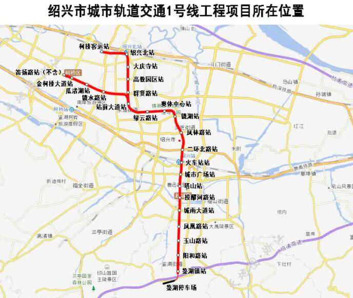紹興市城市軌道交通1號(hào)線工程由主線和支線組成,全長(zhǎng)31.3公里。主線起點(diǎn)為笛揚(yáng)路站(不含),與杭紹城際線貫通運(yùn)營(yíng),終點(diǎn)為鑒湖鎮(zhèn)站,依次沿群賢路、站前大道、體育路、解放路敷設(shè),線路長(zhǎng) 24.2公里,全為地下線;設(shè)車站18座,平均站間距1.38公里;1號(hào)線支線起點(diǎn)為柯橋客運(yùn)站,終點(diǎn)為站前大道站,依次沿綢緞路和站前大道敷設(shè),線路長(zhǎng) 7.1公里,全為地下線,設(shè)車站6座,平均站間距1.26公里。