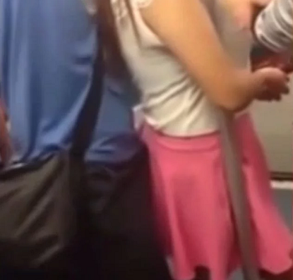 本來很正常的一件事,可是沒一會兒男子就開始了不軌舉動,她用身上的包在女孩身后來回蹭。