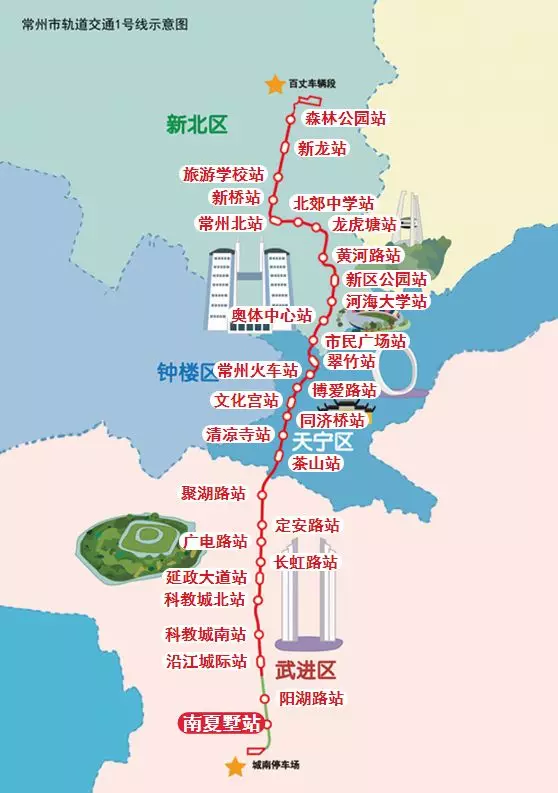 據(jù)了解到,常州地鐵1號(hào)線一期工程線路長(zhǎng)約34.237公里,其中地下線31.635公里,高架線2.189公里,敞開(kāi)段413米。