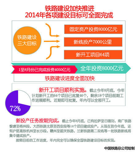 這位負(fù)責(zé)人表示,按照國務(wù)院關(guān)于進(jìn)一步加快鐵路建設(shè)的部署要求,2014年全國鐵路建設(shè)有三大目標(biāo),即全國鐵路固定資產(chǎn)投資8000億元、新線投產(chǎn)7000公里、新開工項(xiàng)目64項(xiàng)。面對(duì)這樣的繁重任務(wù),中國鐵路總公司充分認(rèn)識(shí)加快鐵路建設(shè)對(duì)穩(wěn)增長、調(diào)結(jié)構(gòu)所起到的重要拉動(dòng)作用,堅(jiān)持以改革為動(dòng)力,充分發(fā)揮體制機(jī)制優(yōu)勢(shì),采取強(qiáng)有力措施,全力以赴推進(jìn)鐵路建設(shè),形成了非常好的建設(shè)局面。