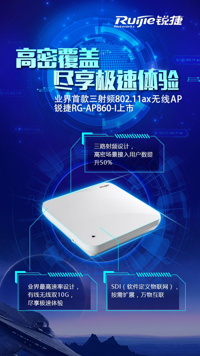 銳捷網(wǎng)絡(luò)致力于提供極致的Wi-Fi體驗,無論是阿里云棲大會、蘇寧之夏晚會,還是在騰訊合作伙伴大會、GITC全球互聯(lián)網(wǎng)大會、賀龍體育場中韓大戰(zhàn)等超大規(guī)模高密度場景,都已經(jīng)充分驗證了其自身實力。今天,銳捷網(wǎng)絡(luò)推出業(yè)界首款三射頻802.11ax AP RG-AP860-I,將802.11ax的極致Wi-Fi體驗帶給用戶。銳捷的所有產(chǎn)品始終圍繞著“場景創(chuàng)新”這個核心詞,始終如一、持續(xù)創(chuàng)新。