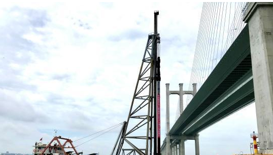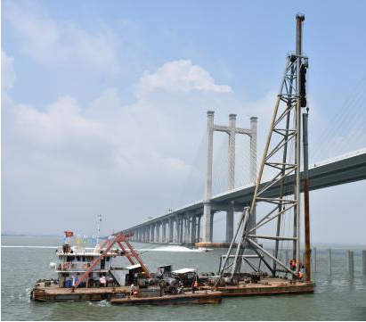 作為全線重點(diǎn)控制性工程,泉州灣跨海大橋全長(zhǎng)20.287公里,跨越泉州灣海域橋梁長(zhǎng)約8.96公里,主橋全長(zhǎng)800米,采用(70+130+400+130+70)米雙塔雙索面鋼-混結(jié)合梁半漂浮體系斜拉橋。該橋起于臺(tái)商投資區(qū),跨越泉州灣后進(jìn)入晉江市、石獅市。此次施工的是該橋76號(hào)主墩海上施工平臺(tái),長(zhǎng)90米,寬56米,為該橋的主體施工打下堅(jiān)實(shí)基礎(chǔ)。