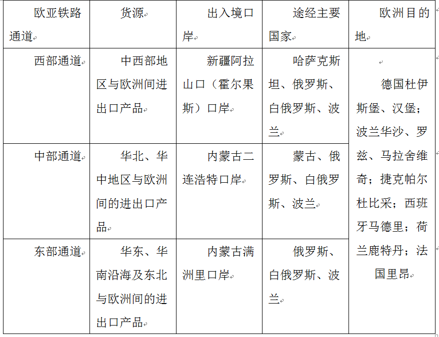 表:西、中、東三條歐亞鐵路通道簡介