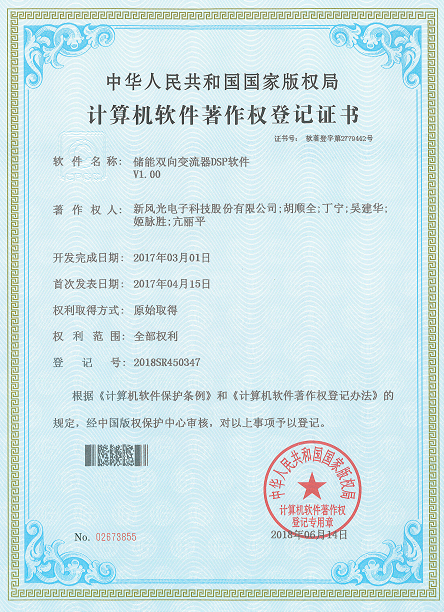近日,由新風(fēng)光電子科技股份有限公司(以下簡(jiǎn)稱新風(fēng)光公司)自主開(kāi)發(fā)的2項(xiàng)軟件創(chuàng)新成果,順利通過(guò)國(guó)家版權(quán)局的審查,獲得軟件著作權(quán)登記證書。這兩項(xiàng)軟件創(chuàng)新成果分別為:《儲(chǔ)能雙向變流器DSP軟件V1.00》(登記號(hào):2018SR450347)、《新風(fēng)光電容儲(chǔ)能雙向變流器單元FPGA軟件V1.00》(登記號(hào):2018SR450354)。截至目前,新風(fēng)光公司軌道交通產(chǎn)品共獲得9項(xiàng)計(jì)算機(jī)軟件著作權(quán)登記證書。
