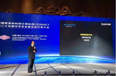 CERNET第二十五屆學(xué)術(shù)年會(huì)于10月22日在青海西寧開幕,參會(huì)代表達(dá)1500余人。作為服務(wù)教育信息化18年之久的數(shù)通廠商,銳捷網(wǎng)絡(luò)高教職教行業(yè)營(yíng)銷總監(jiān)馮兵發(fā)表了以“物聯(lián)時(shí)代,極簡(jiǎn)先行”為題的重要演講,介紹了銳捷極簡(jiǎn)X解決方案。此外,銳捷第五年為CERNET年會(huì)支持無線部署,為參會(huì)者提供快速、穩(wěn)定的無線接入體驗(yàn)。