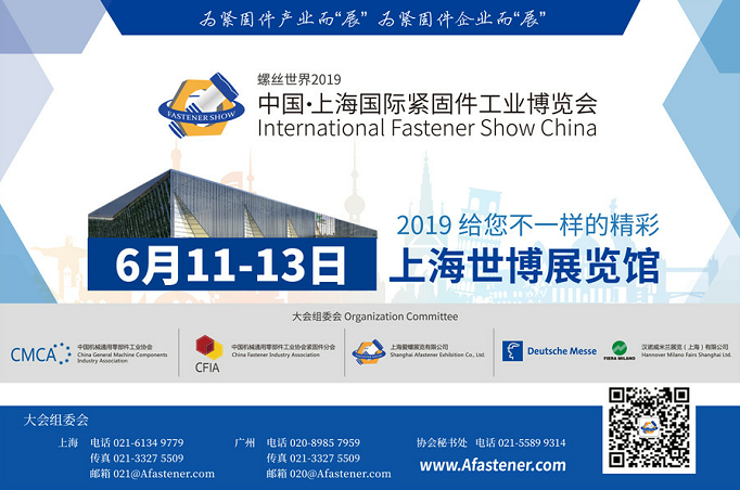 緊固你我,匠心筑夢。2019中國·上海國際緊固件工業(yè)博覽會將于明年6月11-13日在上海世博展覽館盛大舉辦,歡迎各大海內(nèi)外緊固件人士蒞臨,參觀、指導(dǎo)!