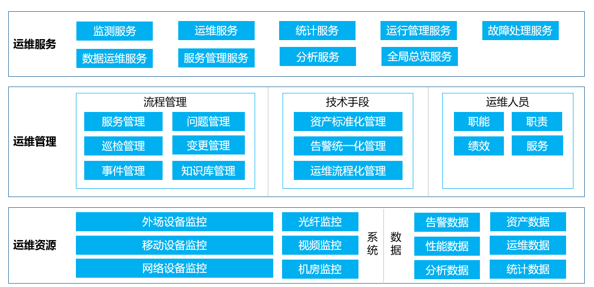 例如:管理層面,主要依靠人工方式進(jìn)行設(shè)備的維護(hù)和管理,設(shè)備獨(dú)立監(jiān)控不僅加大了運(yùn)維人員的工作量,更難以對設(shè)備進(jìn)行系統(tǒng)性的關(guān)聯(lián)管理;成本層面,運(yùn)維管理維護(hù)成本高、資金需求量大,同時(shí)存在設(shè)備信息長期重復(fù)堆砌的情況,未能對決策產(chǎn)生直接幫助。
