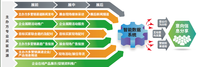 除了傳統(tǒng)的線下展會推廣,2020年主辦方還將通過整合企業(yè)產(chǎn)品的優(yōu)質(zhì)信息及活動內(nèi)容素材,在全年分三階段(展前,展中,展后)向各營銷渠道觸達(dá)的專業(yè)買家數(shù)據(jù)資源進(jìn)行持續(xù)的整合營銷攻勢,以激發(fā)潛在目標(biāo)買家對于企業(yè)的關(guān)注和興趣,從而產(chǎn)生更多互動意向,最終幫助企業(yè)實現(xiàn)營銷效果的提升,獲取更多意向客戶信息。