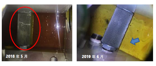 東麗公司是日本著名企業(yè)東麗(TORAY)集團(tuán)投資的一家獨(dú)資子公司,擁有100多臺(tái)注塑機(jī),其液壓系統(tǒng)原先使用的油品換油周期一般制定為2年,實(shí)際根據(jù)油品狀況來最終確定,從2014年開機(jī)到現(xiàn)在平均換油周期約為1.5年。而系統(tǒng)濾芯由于堵塞,基本每年都需要更換一次。