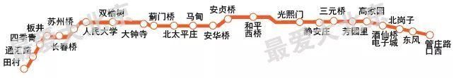 蘇州橋站、萬壽寺站、國家圖書館站、二里溝站、甘家口站、玉淵潭東門站、木樨地站、達官營站、紅蓮南里站、麗澤商務(wù)區(qū)站、豐益橋南站、豐臺站、豐臺南路站、富豐橋站、看丹站、榆樹莊站、宛平城站
