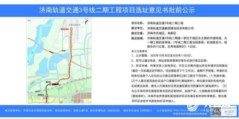 根據(jù)文件顯示,地鐵3號線二期工程是一期工程的延伸線,沿稻香路、機場路走行,全長約13公里,是一條位于城區(qū)東北部的市域快線。公示期為2020年10月30日-11月5日。