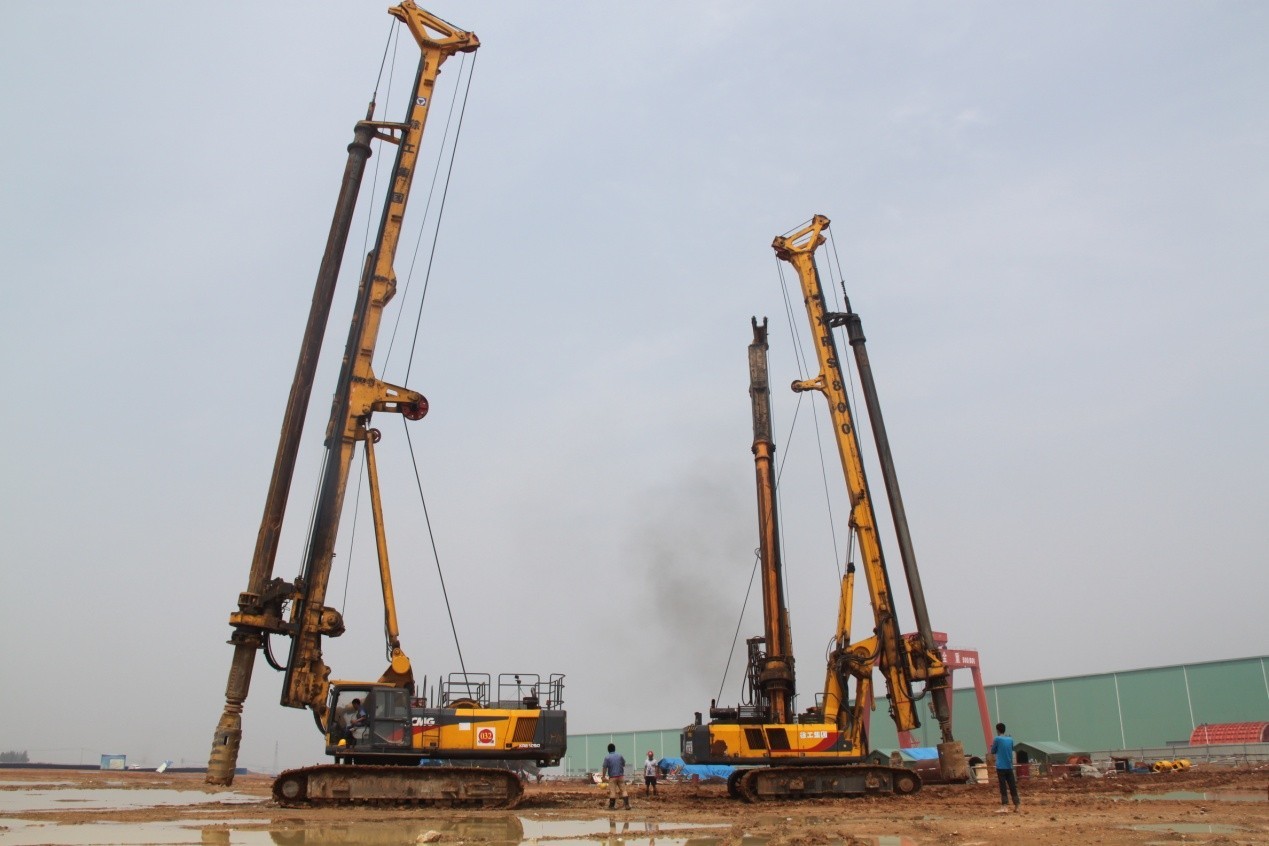 專用的液壓伸縮式履帶底盤在泥濘的土地上運行自如,在鉆頭利落順暢的轉動間,一個個深邃的樁孔完美展現(xiàn)。近日,徐工兩臺XRS1050旋挖鉆,一臺XRS800助力潞安集團煤轉油焦化廠項目,項目投資上百億,建成后將成為世界最大煤轉油基地。項目預計2016年完成,徐工旋挖鉆機以超強的穩(wěn)定性、高效性保障施工進度。