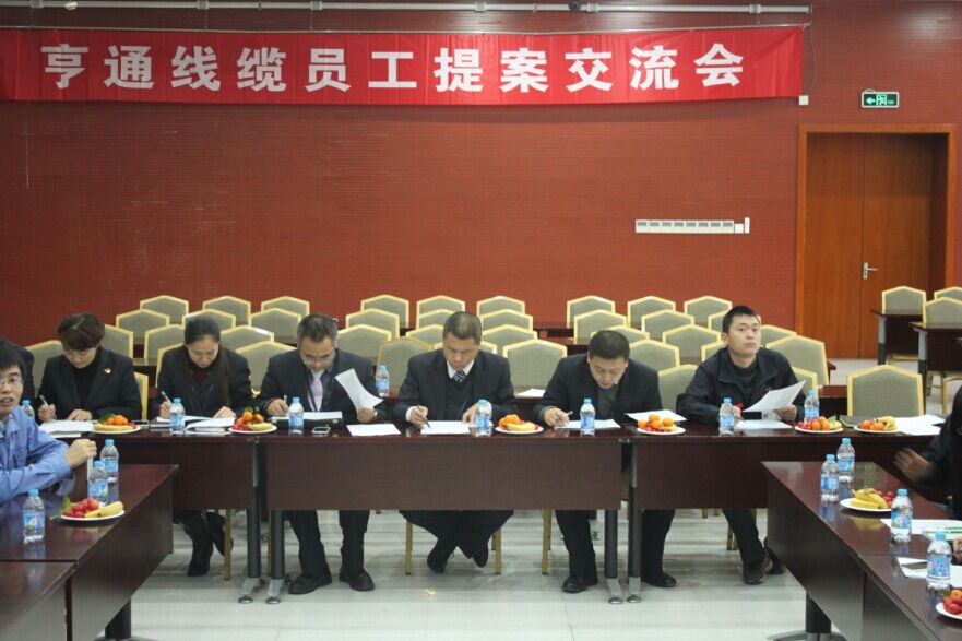 2015年1月15日下午,江蘇亨通線(xiàn)纜科技有限公司(以下簡(jiǎn)稱(chēng)亨通線(xiàn)纜)在亨通光電線(xiàn)纜產(chǎn)業(yè)園新辦公大樓二樓培訓(xùn)大廳組織召開(kāi)2014年第四季度優(yōu)秀提案交流會(huì),亨通線(xiàn)纜生產(chǎn)副總助理林磊,技術(shù)部經(jīng)理崔久德、王國(guó)權(quán)等8位評(píng)委及30余位提案員工代表參加本次會(huì)議。