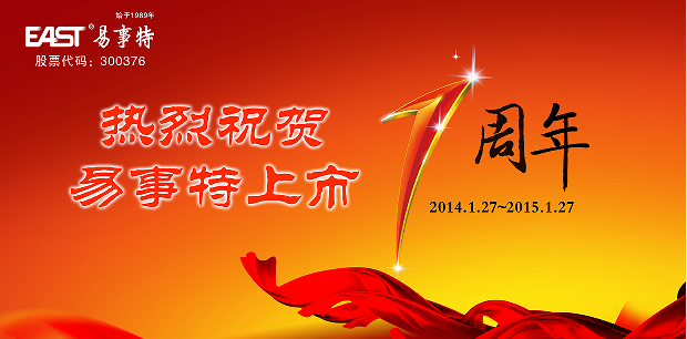 2014年1月27日,是易事特人難忘的日子,正是這一天,易事特在深交所創(chuàng)業(yè)板成功掛牌上市,從此開啟了一個全新的征程。值此易事特上市一周年之際,董事長何思模教授攜全體員工向長期以來對易事特給予關(guān)心和支持的全體投資者及社會各界朋友表示衷心的感謝!
