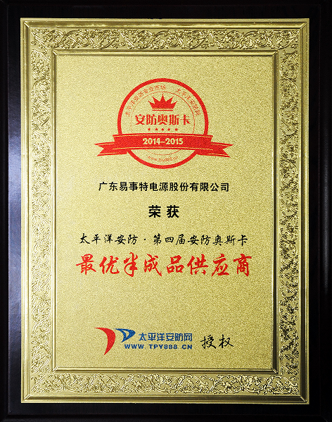 近日,由太平洋安防舉辦的“第四屆安防奧斯卡頒獎典禮暨客戶答謝晚宴”在銀湖會議中心隆重舉行,廣東易事特電源股份有限公司喜獲“2014年度安防最優(yōu)供應(yīng)商”獎項(xiàng)。
