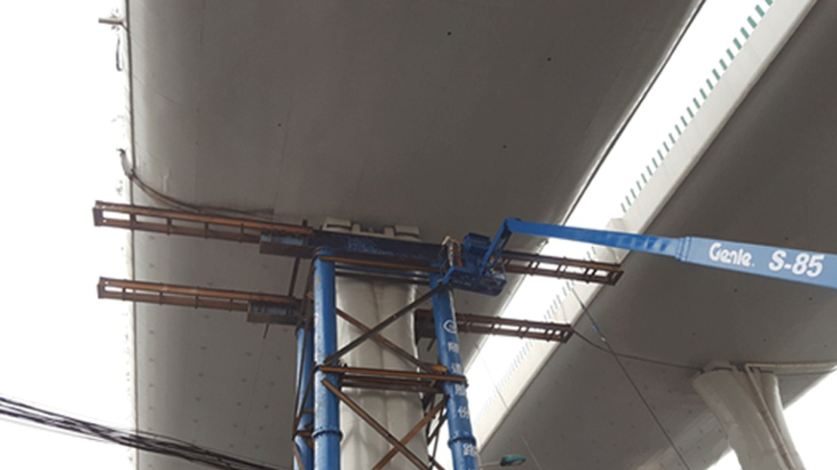 據悉, Genie ?S?-85自行式直臂型高空作業(yè)平臺主要擔任了千斤頂頂升橋梁工作之前的準備工作:在管樁上安裝加固槽鋼確保整體受力平衡穩(wěn)定,加固后將在管樁頂部搭設起工作平臺,每天需要進行長達20多個小時的高強度作業(yè)。