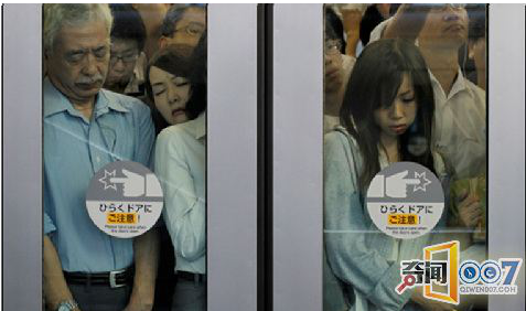 可憐的女孩,被貼在玻璃上。日本的婦女地位很低,因此擠地鐵時男人沒有謙讓的習(xí)慣。因此七十年代發(fā)生了好幾起婦女被擠傷事件。由于過于擁擠,地鐵為了保護(hù)女士和兒童專門開設(shè)了婦女專用車廂。后來這個車廂撤銷了。