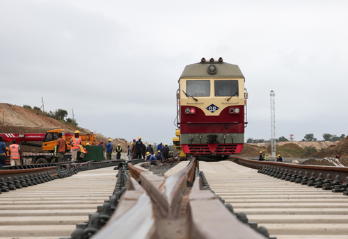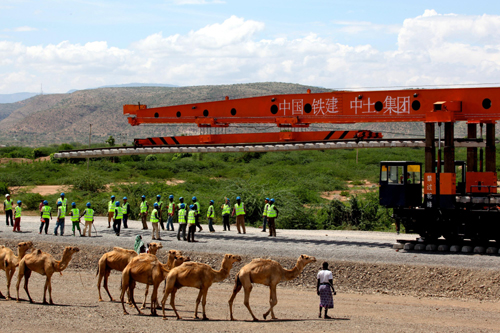 這是2014年4月27日中國(guó)鐵建中土集團(tuán)的工人在埃塞俄比亞德雷達(dá)瓦進(jìn)行亞吉鐵路先期鋪軌作業(yè)的資料照片。亞吉鐵路全長(zhǎng)752.7公里,于2010年9月開始設(shè)計(jì)建造,設(shè)計(jì)時(shí)速120公里,由中國(guó)中鐵和中國(guó)鐵建組織施工。鐵路建成后,亞的斯亞貝巴至吉布提運(yùn)輸時(shí)間從公路運(yùn)輸?shù)?日降至10小時(shí),這條鐵路將成為埃塞俄比亞重要的出海運(yùn)輸通道。新華社發(fā)(劉渝 攝)