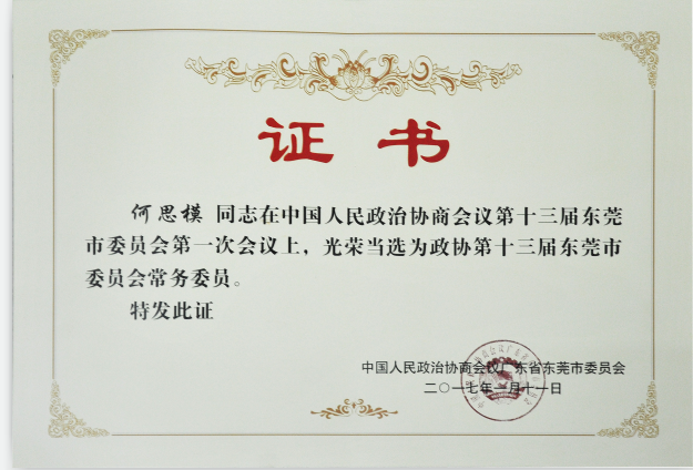 人民政協(xié)是團結之家,民主之家。易事特集團董事長何思模教授至今為止已經連續(xù)擔任了十一年東莞市政協(xié)常務委員了,作為政協(xié)大家庭的一份子,何思模教授在掌管易事特集團的重任下依然不忘在百忙之中抽出時間一如既往地支持市政協(xié)的工作,為東莞的經濟社會發(fā)展積極建言獻策,努力貢獻自己的一份力量。政協(xié)委員責任重,影響大,社會關注度高,何思模教授一直以來都嚴格恪守憲法法律和政協(xié)章程,自覺踐行社會主義核心價值觀,始終不渝地承擔起為改革發(fā)展而為、為人民利益而呼、為政協(xié)事業(yè)而謀的責任和使命,著力提高政治把握能力、調查研究能力、聯系群眾能力和合作共事能力,努力成為“懂政協(xié)、會協(xié)商、善議政”的行家,爭當“守紀律、講規(guī)則、重品行”的模范,無愧于政協(xié)委員的光榮稱號。
