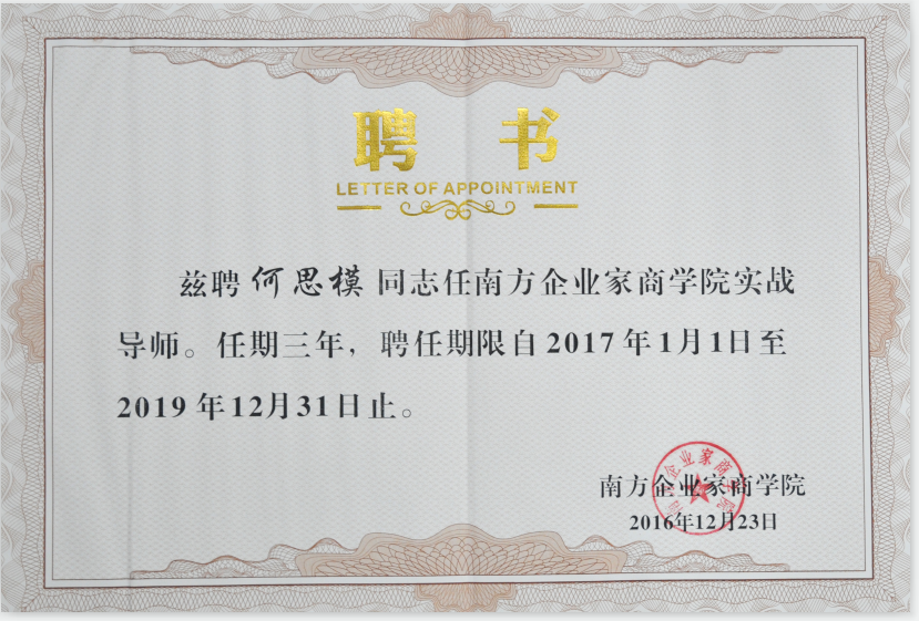近日,廣東省企業(yè)聯(lián)合會、廣東企業(yè)家協(xié)會(簡稱“省企聯(lián)”)傾力打造的培訓(xùn)高地——南方企業(yè)家商學(xué)院在廣州舉行聘請顧問和導(dǎo)師儀式,并舉行了廣東企業(yè)經(jīng)營者素質(zhì)提升研修班開班典禮。易事特董事長何思模教授受聘為南方企業(yè)家商學(xué)院實(shí)戰(zhàn)導(dǎo)師。據(jù)介紹,受聘的11名顧問導(dǎo)師來自廣東省委黨校、廣東省社會科學(xué)院、廣東省體制改革研究會、華南理工大學(xué)、易事特集團(tuán)股份有限公司等單位;首批研修班有42位學(xué)員,均來自廣東各企業(yè)的管理者。研修班學(xué)制六個月,授課地點(diǎn)在廣州。
