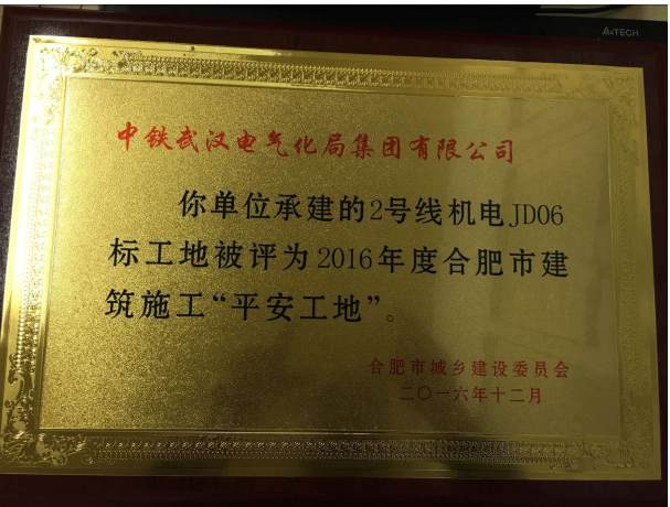 (記者 ???/span> 通訊員 黃靚 雒亞琴)日前,中鐵武漢電氣化局上海分公司合肥市軌道交通2號線工程機電系統(tǒng)總承包6標(biāo)項目被授予2016年度合肥市建筑施工“平安工地”榮譽稱號。是合肥市建筑協(xié)會對該項目部工程安全、質(zhì)量、文明施工等工作的充分肯定,在合肥市建筑施工市場樹立了良好的企業(yè)品牌形象。