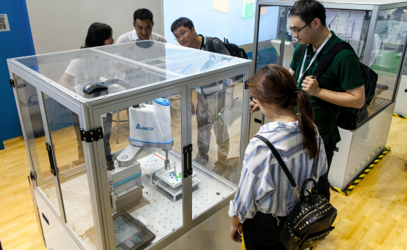 2017年7月5-8日,第6屆中國國際機(jī)器人展覽會在上海召開,工業(yè)自動化領(lǐng)導(dǎo)廠商臺達(dá)攜其經(jīng)典的SCARA工業(yè)機(jī)器人DRS40L、DRS60L系列,垂直多關(guān)節(jié)工業(yè)機(jī)器人DRV90L系列精彩亮相。同時,臺達(dá)以多年深耕行業(yè)的優(yōu)勢,針對不用產(chǎn)業(yè)應(yīng)用與制程需求,動態(tài)展示桁架式機(jī)械手控制解決方案、高速分揀展示線解決方案,以及機(jī)器人控制解決方案、碼垛機(jī)解決方案等。
